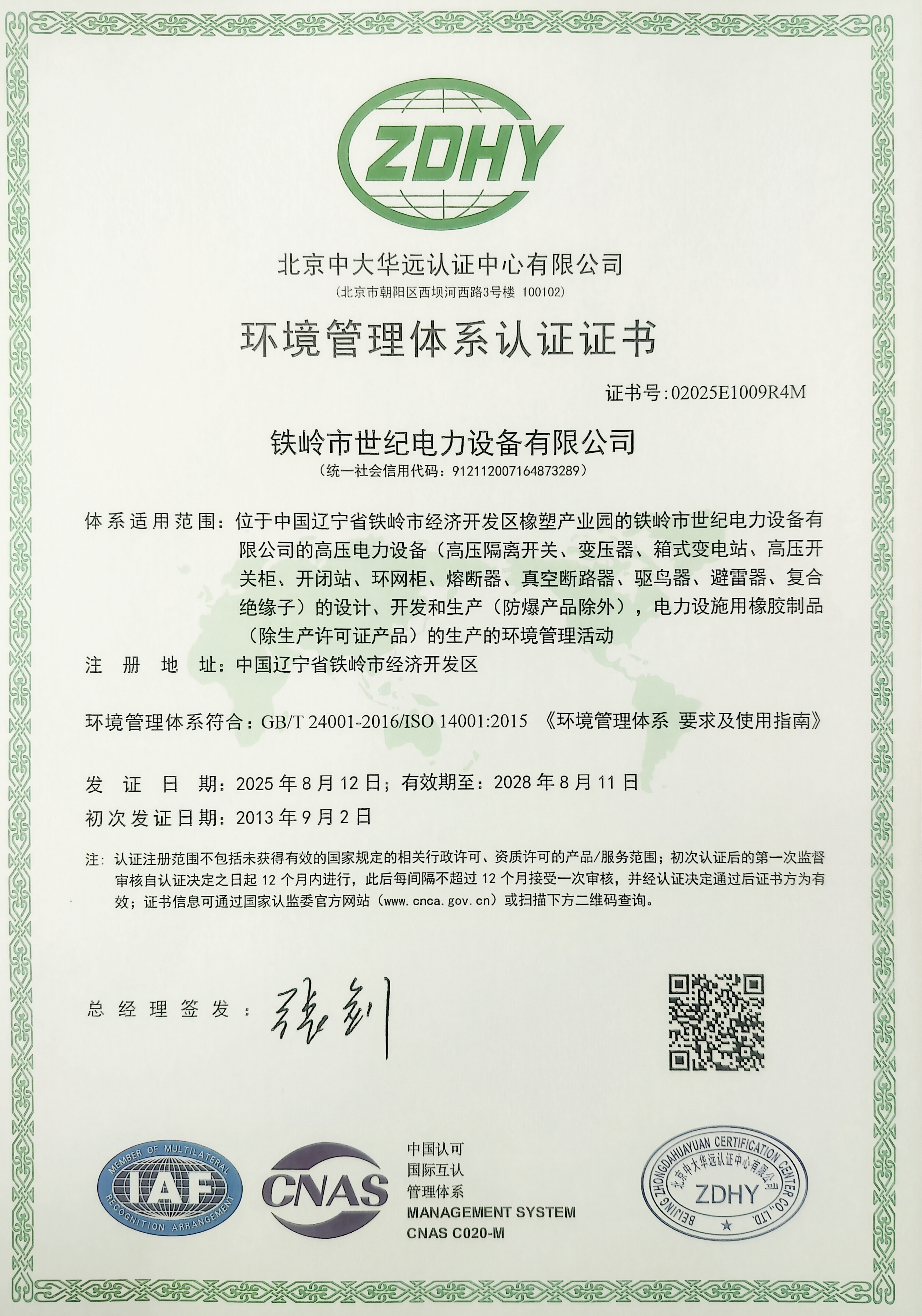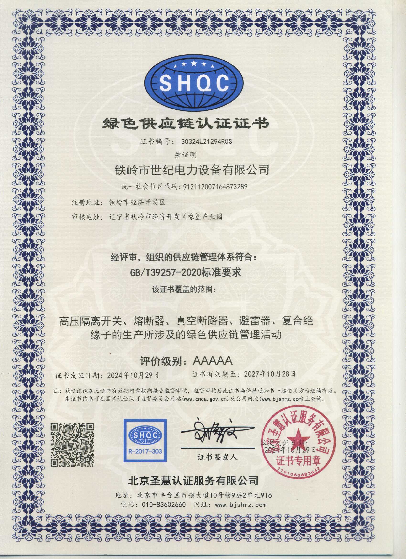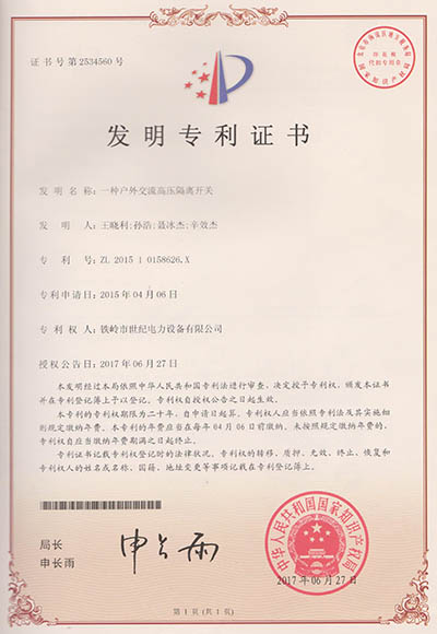 鐵嶺市世紀電力設備有限公司是集科研開發(fā)、生產制造、用戶服務于一體的國家高新技術企業,始建于1999年,位于鐵嶺經濟開發(fā)區,占地面積5萬余平方米,建筑面積2萬余平方米。主要從事國家電網配套戶外高低壓隔離開關、電力電纜、變壓器成套裝置、高低壓開關柜、箱式變電站、絕緣子等產品的研發(fā)、生產和銷售。公司現有國家發(fā)明專利6項、實用新型專利9項,公司通過了ISO9001國際質量管理體系認證、ISO14001環(huán)境管理體系認證和ISO 45001職業健康安全體系認證。